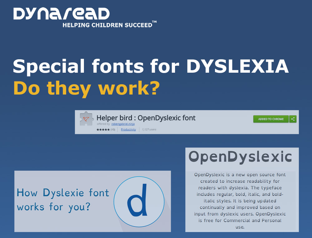 Fighting for children and adults with Dyslexia is like anything else: You tap into all the research, you think out of the box, you explore ideas, and so forth. True progress rarely follows established paths. Dyslexia Fonts are an example hereof. Designing letter fonts for people with Dyslexia makes a lot of sense if you know that a subgroup of dyslexics complain about dancing letters, and difficulty tracking lines, etc. In the last couple of years two fonts have been specifically produced: Dyslexie (Boer, 2008) and OpenDyslexic (Gonzales, 2012). The former is a commercially marketed font, and the latter is Open Source. An IT engineer within Irish Project Management Software Company TEAMWORK.com took it upon himself to develop an Extension for Google Chrome to transform all fonts on web pages you surf into OpenDyslexic (Google in Google Play for Helper Bird https://chrome.google.com/webstore/search/helper%20bird?hl=en)